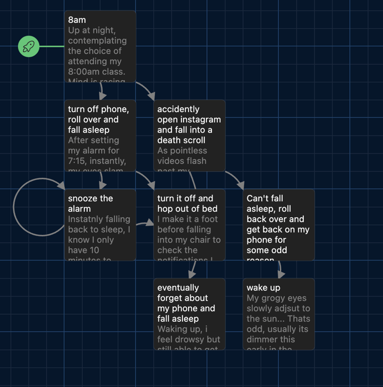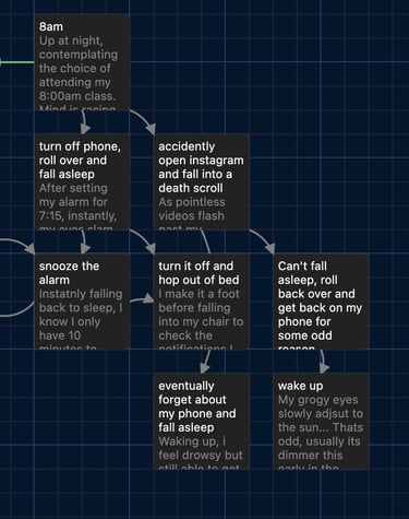 Making the metaphor of self video was very cool for a few different reasons. I liked the idea of getting a bunch of different short clips that showed what kind of life I live. It took a while to get all the short clips from my camera roll because they were so spread out over time. After I got all the clips together, I used a video editing app called Cap Cut to splice the clips together. I thought it was a good idea to only show short clips because it symbolized how my life moves very fast. From the peaceful clips to the rushing of a waterfall. I also had to include some clips of me skiing because I think that is a huge aspect of my life. I have done a good amount of video editing through skiing so I knew the process pretty well. I didn't have too much trouble getting through this assignment, other than finding relevant clips. Although I have done a good amount of video editing I haven't done anything quite like this. By making the video with short clips, I needed to find the most interesting part of every clip, forcing me to spend a bit more time than usual.